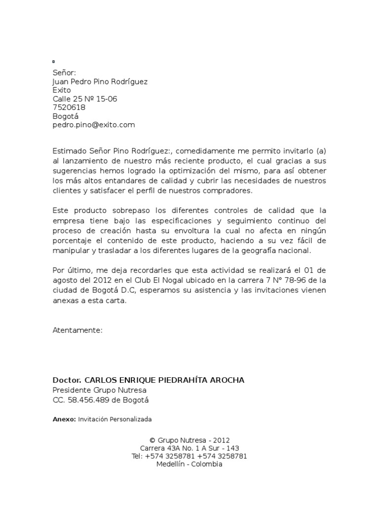 Carta Comercial Presentacion Nuevo Producto