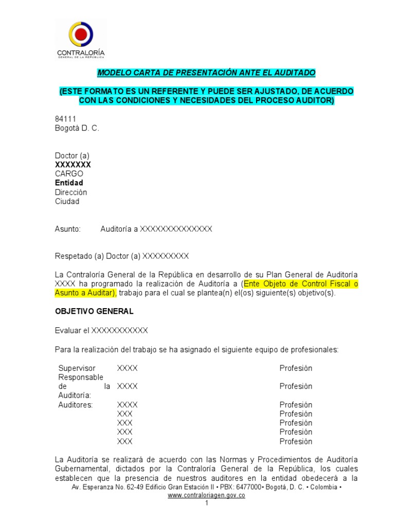 Carta de presentacion de auditoria gubernamental. Huancayo 14 de octubre del 2014. Por ello es necesario realizar un aviso a la empresa que será auditada a través de una carta de auditoría. Nos es grato someter a su consideración nuestra propuesta para la prestación de los servicios profesionales de auditoría informática. De esta forma la preparación de la empresa puede ayudar mucho a la rápidez del trabajo del auditor.