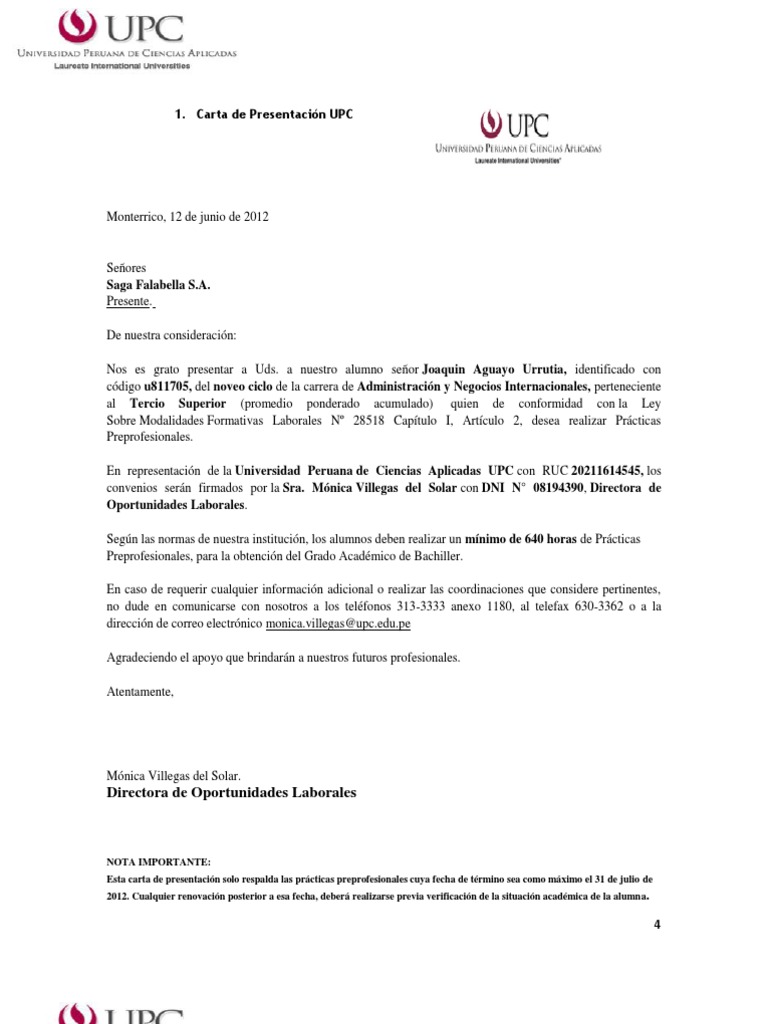 Carta de presentacion de la upc. Tu carta debe hablar sobre ti y sobre las razones que te llevan a postularte a la oferta laboral y qué te diferencia del resto de los competidores o qué puedes aportar que sea distinto. De identidad del representante. Luego haz clic en solicitud de cartas. Archivo del blog.