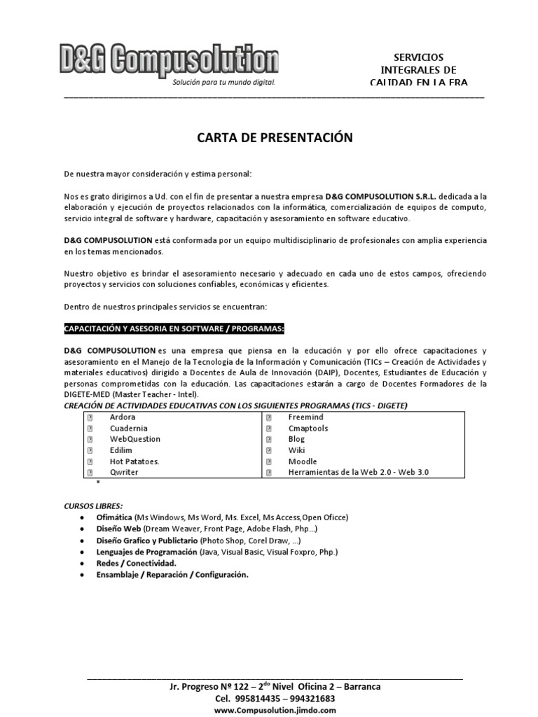 Modelo de carta de presentaciã n de servicios es la herramienta que todo empresario debe tener en cuenta al momento de desear promocionar su producto. Ejemplo n 2 de carta de ofrecimiento de servicios. Carta de servicios educativos 1 presentación la carta de servicios educativos es un instrumento que se pone a disposición de la comunidad educativa con la pretensión de que se convierta en un recurso útil para favorecer la implicación de sus miembros y para agilizar la comunicación entre alumnado profesorado y familias. Carabobo n 346 telf.