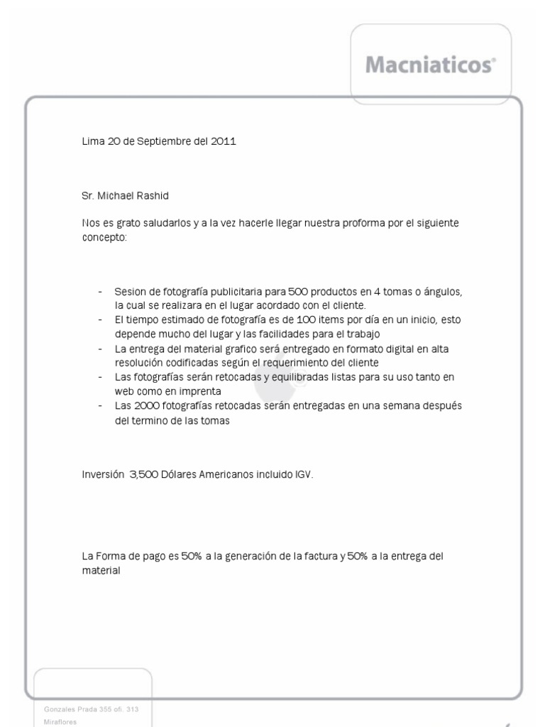 Carta de presentacion de servicios fotograficos. Las empresas pueden ofrecer dos tipos de cosas. El realizar una carta de presentaciã n de una empresa es recurrente el uso en algunos paã ses. Magnificos modelos de carta para ofrecer servicios para que una empresa o una persona natural de a conocer sus servicios es necesario que se haga publicidad por los medios que le sean posibles. Una carta de presentación de servicios es una carta enfocada a informar a los clientes potenciales las capacidades que tiene una empresa para prestar los servicios correspondientes a su giro.