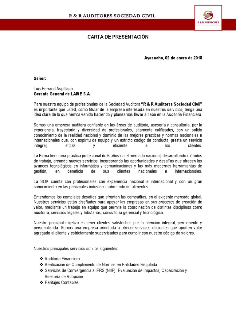 Algunas personas encuentran la idea de escribir una carta de presentación un poco intimidante. Outsourcing de servicios de administración. La siguiente información debe estar incluida en la carta de presentación de servicios. Consultoria adh 1011 año académico.