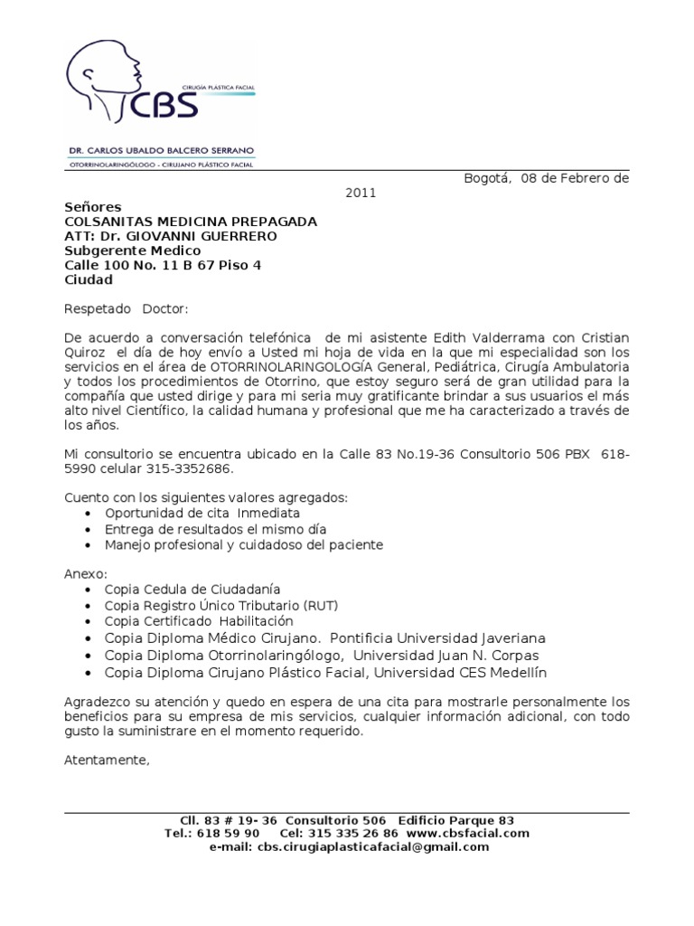 Carta De Presentacion De Un Medico Cirujano