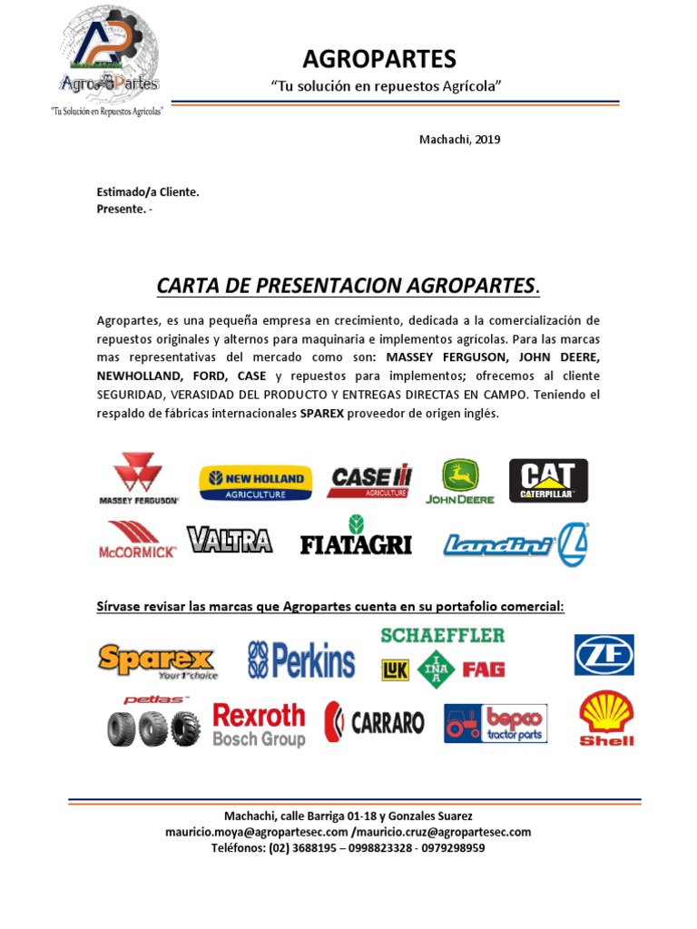 Carta de presentacion de una empresa agricola. Desde 2005 el equipo de asesores profesionales redactores de cv certificados y tecnólogos expertos de livecareer ha estado desarrollando herramientas profesionales que han ayudado a más de 10 millones de usuarios a crear cv más eficaces a redactar cartas de presentación más convincentes y a desarrollar mejores aptitudes para las entrevistas. Presentación de la empresa y de los componentes de la empresa y su función. Esta carta de presentación es muy importante para una empresa ya que ella da una muestra de lo que ellos pueden y tienen. Debeis recordar que sois una empresa de diseño y que os presentais a un concurso de diseño modular.