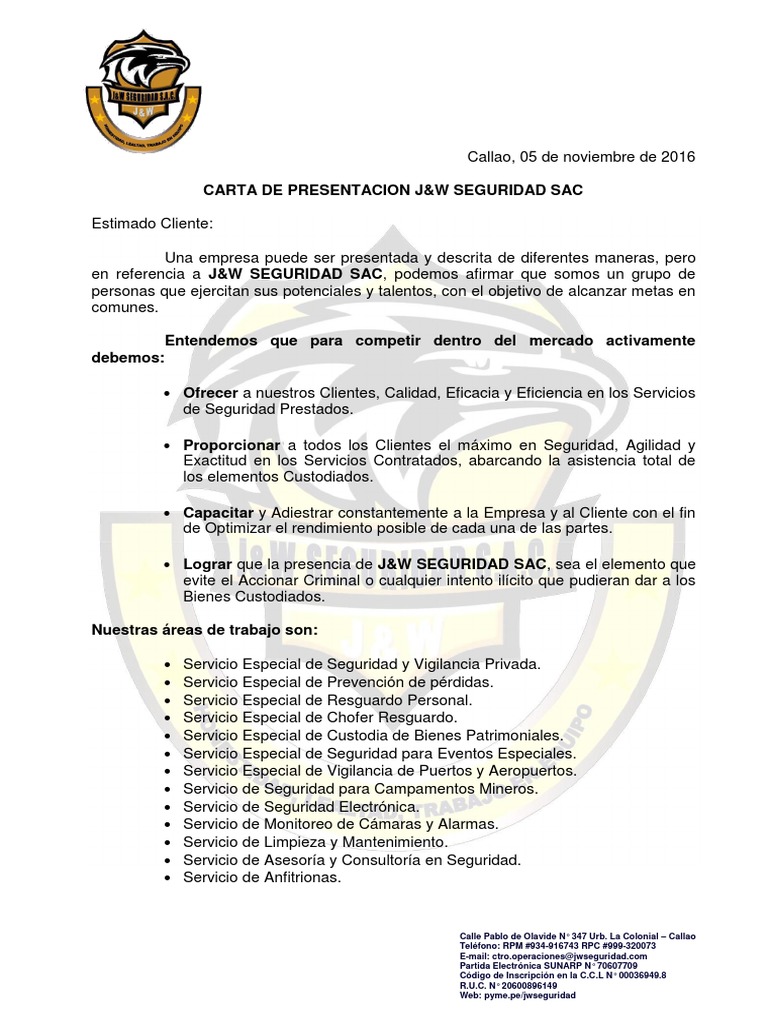 Subrayando las característica ventajas mejoras e innovaciones. Pero antes vamos a explicarte de dónde viene el concepto carta de presentación de servicios de empresa. Una de las formas más útiles de dar a conocer tu compañía es redactando una carta de presentación de una empresa la cual tendrás que hacer llegar a todos los posibles clientes para que se conozca tu negocio y mostrar que dispone de los productos y precios que buscan las personas. Crea un membrete usando el nombre de tu compañía de bienes raíces dirección y una insignia.