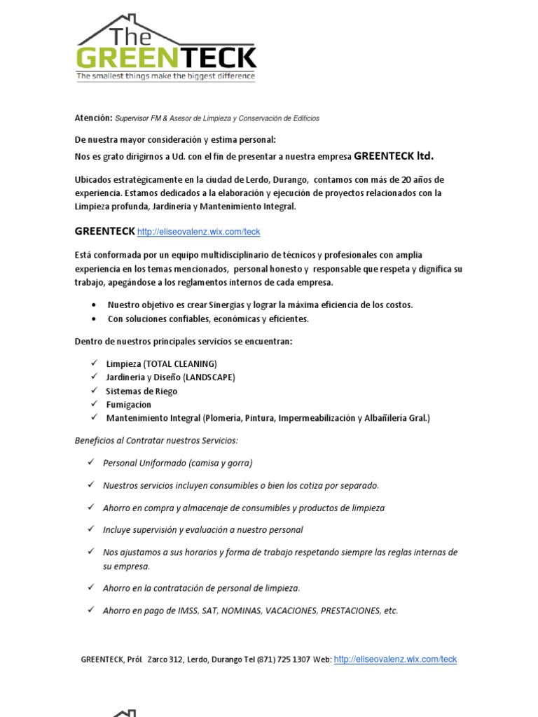 Carta De Presentacion De Una Empresa De Jardineria