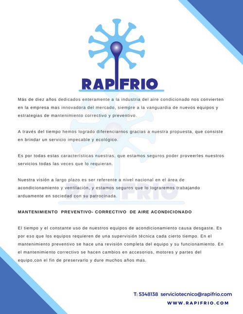 Nuestros servicios sistemas de aire acondicionado diseños industriales felaire s a. De acuerdo al anuncio publicado en la página oficial del centro comercial libertad se busca personal para la instalación y mantenimiento de equipos de aire acondicionado en sus diversos locales a nivel nacional. Ventilación instalando un sistema de aire acondicionado de expansión directa tipo central con unidades cassette mini split y unidades de ventilación mecánica con un total de 50 toneladas de refrigeración ofreciendo una calidad y filtración del aire adecuada para la operación normal de sus colaboradores y pacientes. Nos es grato dirigirnos a ustedes saludarlos y hacerles llegar la carta y el catálogo de presentación de nuestra empresa compañía comercializadora gufran s a.