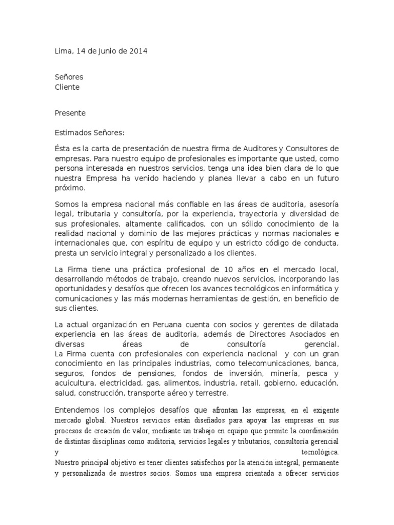 Carta De Presentacion De Una Empresa De Servicios Legales