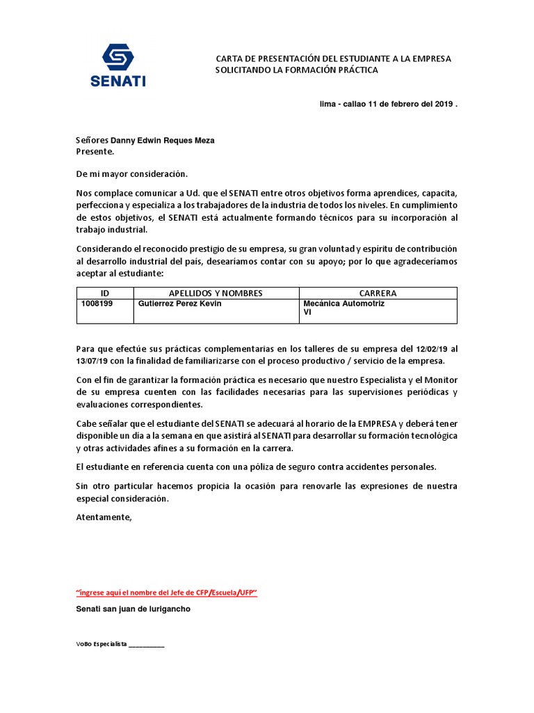 Carta de presentacion de una empresa senati. En muchos casos las empresas lo envían como parte de una síntesis curricular empresarial. Carta de presentacion del aprendiz a la empresa referencia. El primer párrafo debe explicar el motivo de la carta es decir la presentación de la empresa. Lta j5l 3p8 asunto.