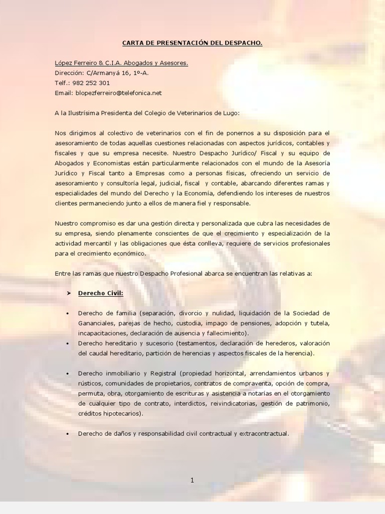 Carta de presentacion despacho abogados. En servicios jurídicos abogados encontrarás el soporte jurídico que te brindará seguridad y certidumbre. 686 702 452 e mail. Ciudad de panamá septiembre 30 de 2013. Ciudad vieja no 230.