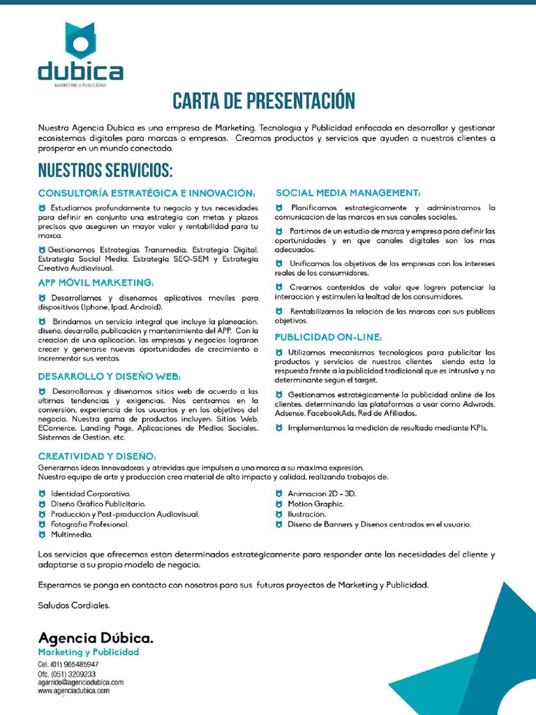 De lunes a viernes de 9h a 21h. Se trata de cartas que emiten las empresas con el fin de darse a conocer y mostrarles a los clientes o posibles clientes los servicios que ofrece y el trabajo al que se dedican. Carta de presentación en respuesta a una oferta. De las 10 a las 13 horas del 24 al 28 de agosto.