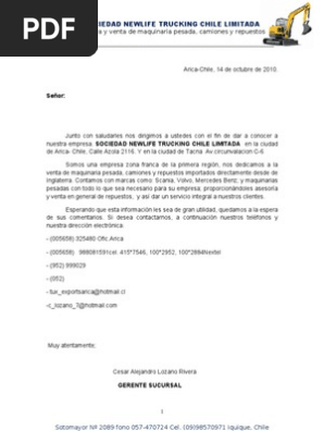 Carta De Presentacion Empresa Chile