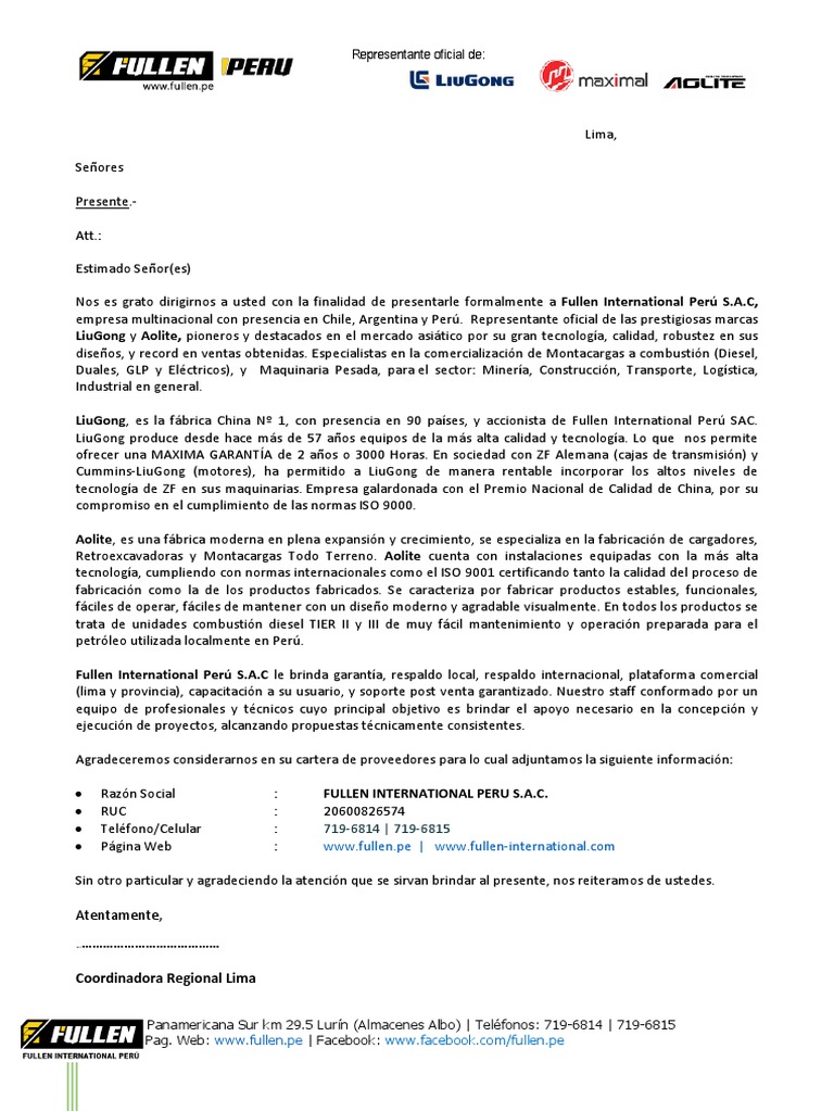 Nombre y razón social de la empresa que recibe la carta presente reciban un saludo cordial de parte de nombre y razón social de la empresa que se presenta empresa que nace con la intención de revolucionar el ramo de ramo comercial al cual pertenece la empresa que se presenta mediante la incorporación de recursos humanos y. Es muy apreciado por los futuros clientes saber a quien o quienes pedir referencias. Partes en que está conformada una carta de presentación de una empresa en chile. Carta de presentación empresa ingenieria y mantención industrial spa.