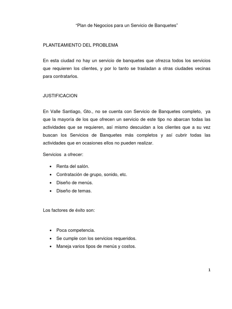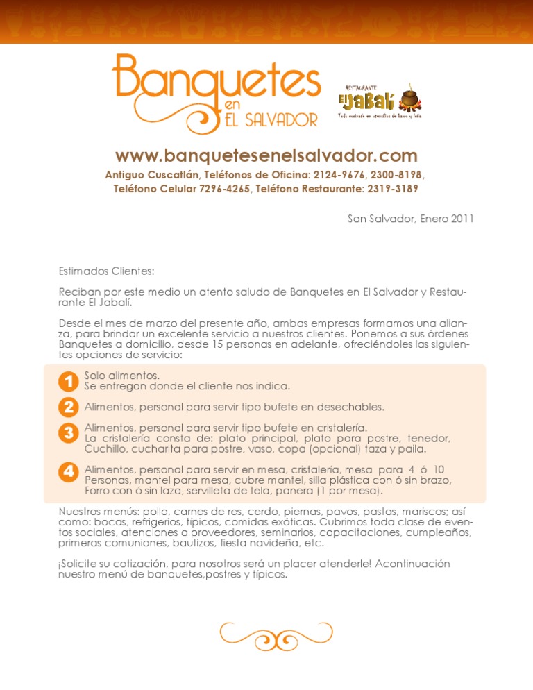 Carta De Presentacion Empresa De Banquetes