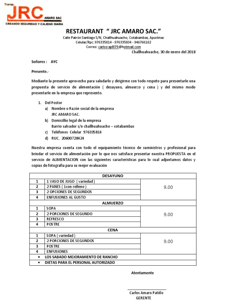 Carta de presentacion empresa restaurante. La carta de presentación de una empresa es un documento formal que como su nombre lo indica las empresas lo emiten para indicar cuáles son los servicios que tienen disponibles y que así sus posibles clientes conozcan un poco más acerca de ellas muchas veces una compañía las manda como parte de su cv empresarial para que así tenga un toque más profesional en lo que se envía. Me encuentro abierto a aprender y a aportar. Trujillo julio 10 de 2018. Una de las formas más útiles de dar a conocer tu compañía es redactando una carta de presentación de una empresa la cual tendrás que hacer llegar a todos los posibles clientes para que se conozca tu negocio y mostrar que dispone de los productos y precios que buscan las personas.