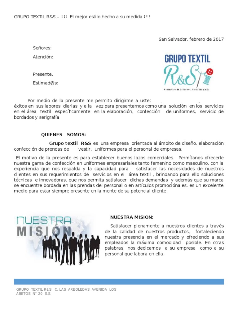 Carta De Presentacion Empresa Textil
