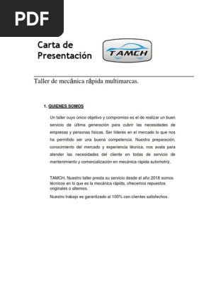 La carta de ejemplo que podrás ver a continuación está pensada para responder a una oferta de empleo en la que se solicita a un ingeniero industrial especialista en instalaciones de frío. En cualquier caso tú puedes adaptarla a tus propias condiciones personales y a la oferta a la que te vayas a presentar. Carta de presentacion taller mecanico automotriz carta de presentacion taller mecanico automotriz ejemplo de carta de presentacion carta de presentacion personal carta de presentacion laboral carta de presentacion empresarial carta de presentacion de una empresa modelo carta de presentacion carta de presentacion de servicios carta de. De nuestra trayectoria formativa y laboral debiéndose ajustar al puesto de trabajo que nos interese.