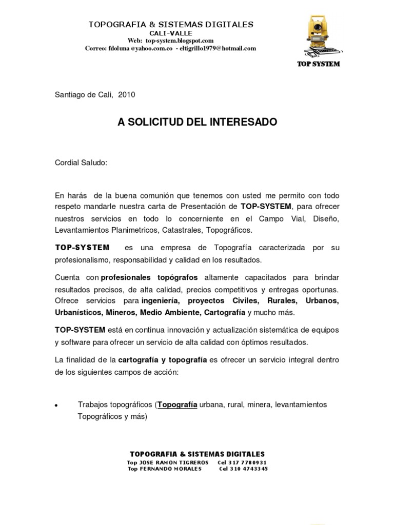 Carta De Presentacion Ofreciendo Nuestros Servicios
