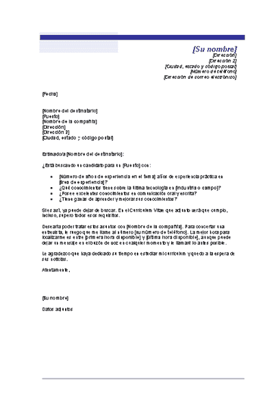 Carta de ejemplo para trabajar de responsable de atención al cliente. Use esta plantilla con formato previo para escribir una carta de presentación profesional que complemente su currículum vítae. 3 seleccione entre varias plantillas de cartas de presentación diseñadas para todos los trabajos y sectores. En ocasiones aunque la hoja de vida es un recurso necesario al momento de aplicar a cualquiera práctica es un recurso muy técnico que no te permite presentarte ni darte a conocer bien.