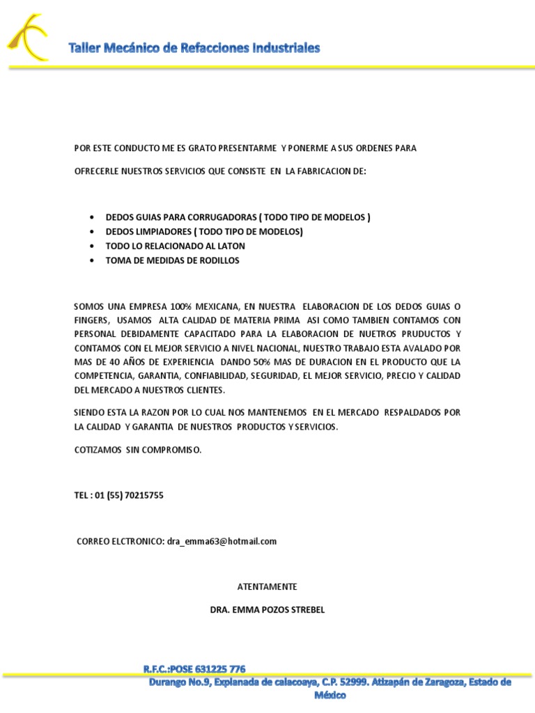 71294849383 fielders s a jefatura de recursos humanos av. Para acercarse a los posibles clientes potenciales no solo es necesario la creaciã n de publicidad como lo es. Estoy a tus ordenes estoy para servirte estas frases al parecer ya no las escuchamos tan frecuentemente los invitó a potencializarlas en el mercado sin duda la atención al cliente es clave para tener cautivo al consumidor. Tengo a bien dirigirme por medio de usted a su digna empresa fielders s a.