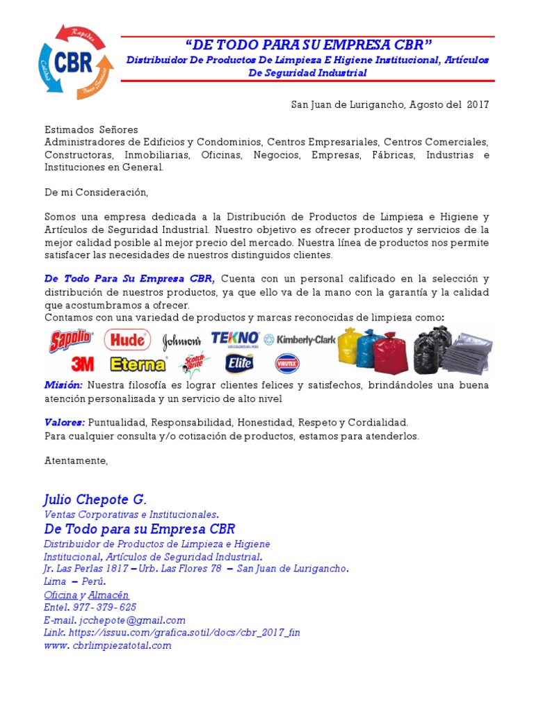 Carta De Presentacion Para Productos De Limpieza