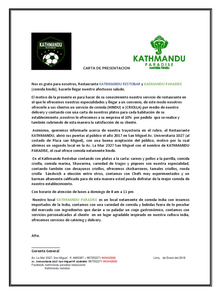 Carta De Presentacion Para Restaurante