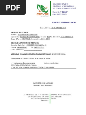 P r e s e n t e. La dirección del plantel perteneciente al colegio de estudios científicos y tecnológicos del estado de jalisco se permite presentar a sus atenciones al alumno a de la especialidad con no. Debes cumplir 480 horas y presentar la siguiente documentación en trabajo social. Si no sabes cómo redactarla o por dónde empezar no te preocupes aquí tienes 7 modelos que te.