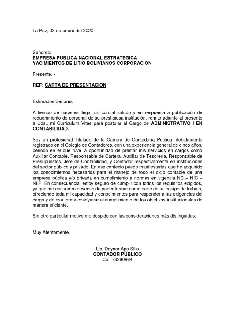 Carta de presentacion para una empresa publica. En muchos casos las empresas lo envían como parte de una síntesis curricular empresarial. La carta de presentación de una empresa es un documento formal que como su nombre lo indica las empresas lo emiten para indicar cuáles son los servicios que tienen disponibles y que así sus posibles clientes conozcan un poco más acerca de ellas muchas veces una compañía las manda como parte de su cv empresarial para que así tenga un toque más profesional en lo que se envía. Aquí te enseñamos un ejemplo de carta formal para dirigirte a una institución dependiendo del organismo al que quieras escribir y la motivación la carta deberá incluir más o menos apartados. A la hora de optar por un puesto de trabajo junto con el curriculum vitae se suele incluir un tipo de carta denominada como carta de presentación.