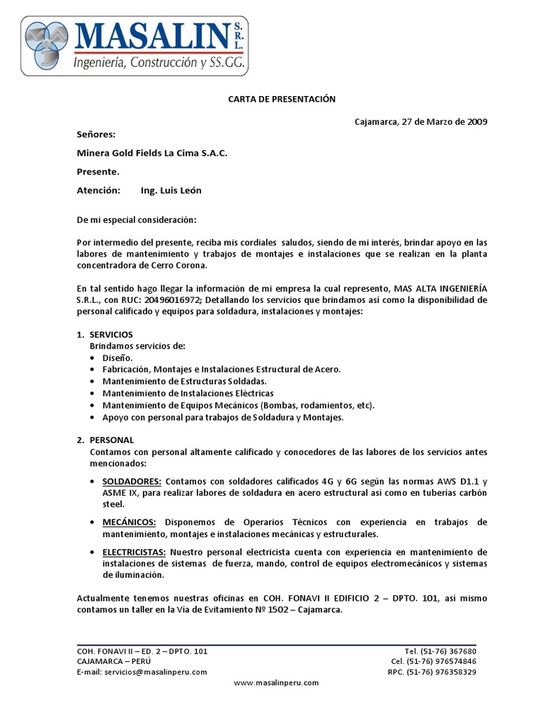 Servicios integrales de mantenimiento simsa av. Ejemplo de carta de mantenimiento. Desde 2005 el equipo de asesores profesionales redactores de cv certificados y tecnólogos expertos de livecareer ha estado desarrollando herramientas profesionales que han ayudado a más de 10 millones de usuarios a crear cv más eficaces a redactar cartas de presentación más convincentes y a desarrollar mejores aptitudes para las entrevistas. Escribir una excelente carta de presentación de servicios no tiene que ser difícil sólo debes tener en cuenta que dicha carta debe de ser persuasiva y profesional y que ayude a diferenciarte de la competencia.