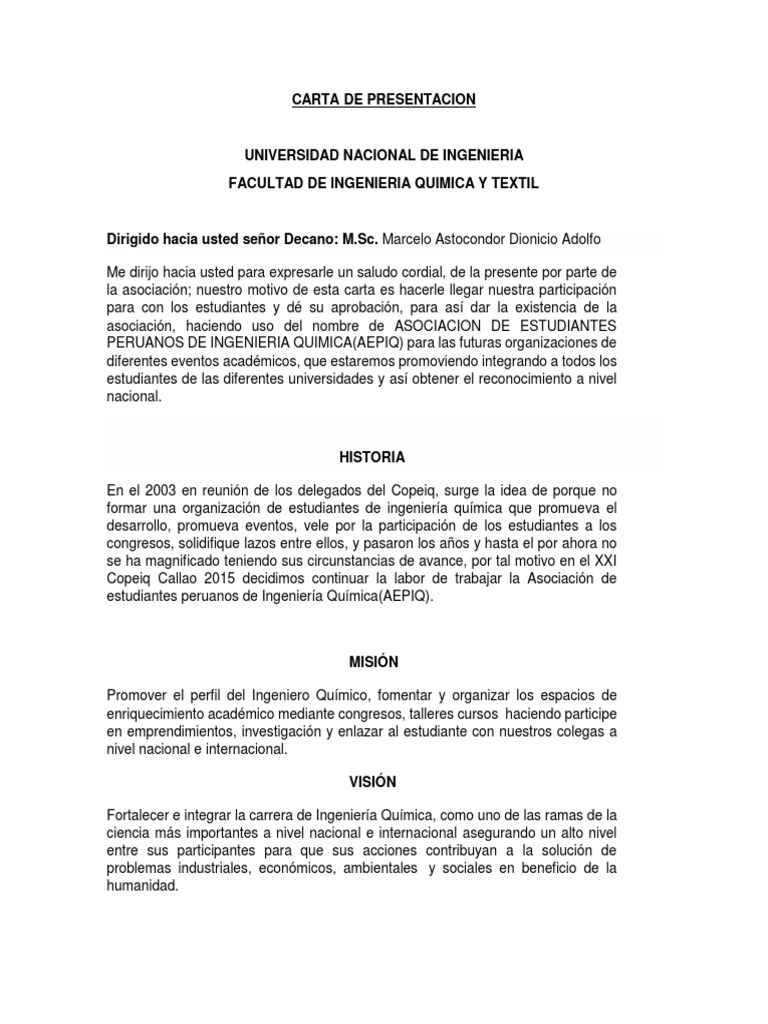 Carta De Presentacion Quimico