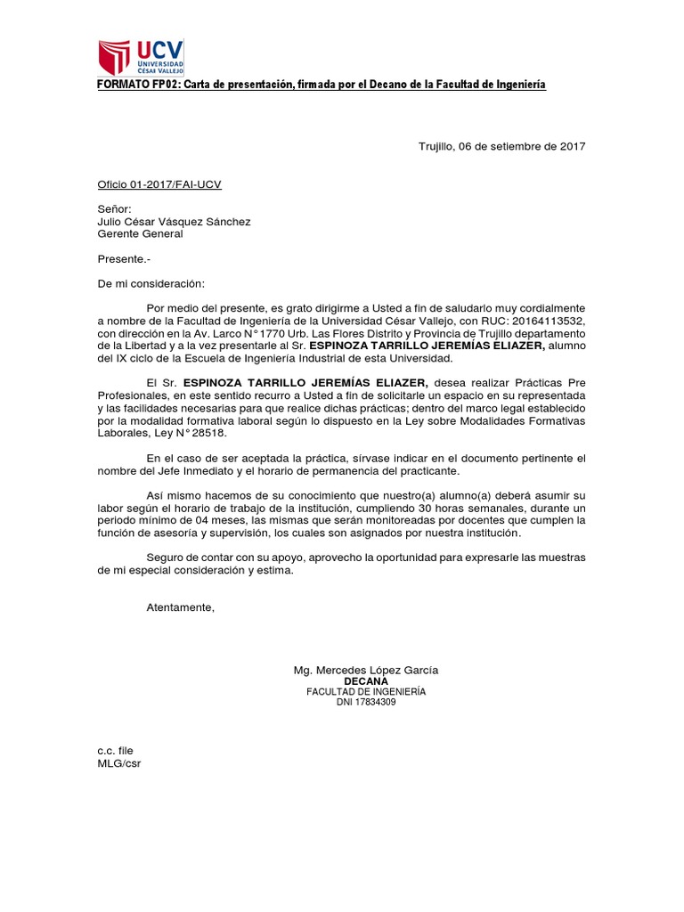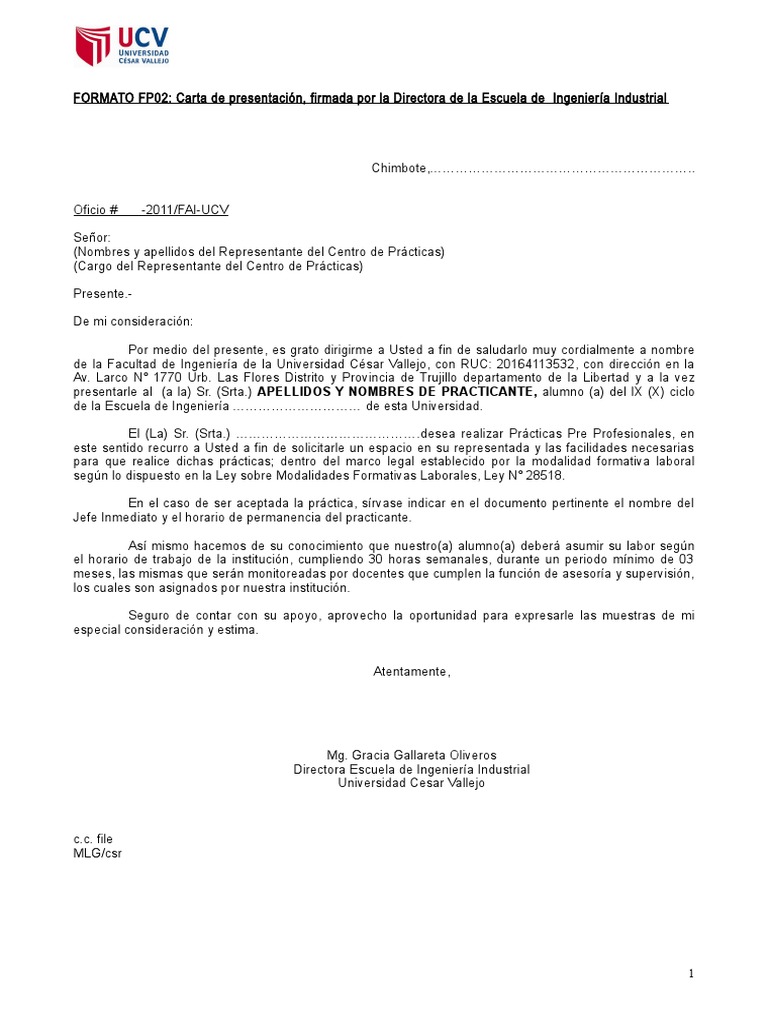 En el caso de los egresados será por un plazo no mayor al exigido por la universidad como requisito para obtener el grado o título respectivo el cual será indicado en la carta de presentación del practicante. En numerosas ocasiones no coincide lo que un demandante de empleo considera necesario incluir en una carta de presentación o en un currículum vitae con lo que los empleadores quieren encontrar. Carta de servicios tríptico carta de servicios. La carta de presentación es un documento que acompaña y complementa tu currículum vitae y te ofrece la posibilidad de presentarte ante la empresa aumentando exponencialmente las probabilidades de que el reclutador se interese más por ti y te llame para hacer una entrevista de trabajo.