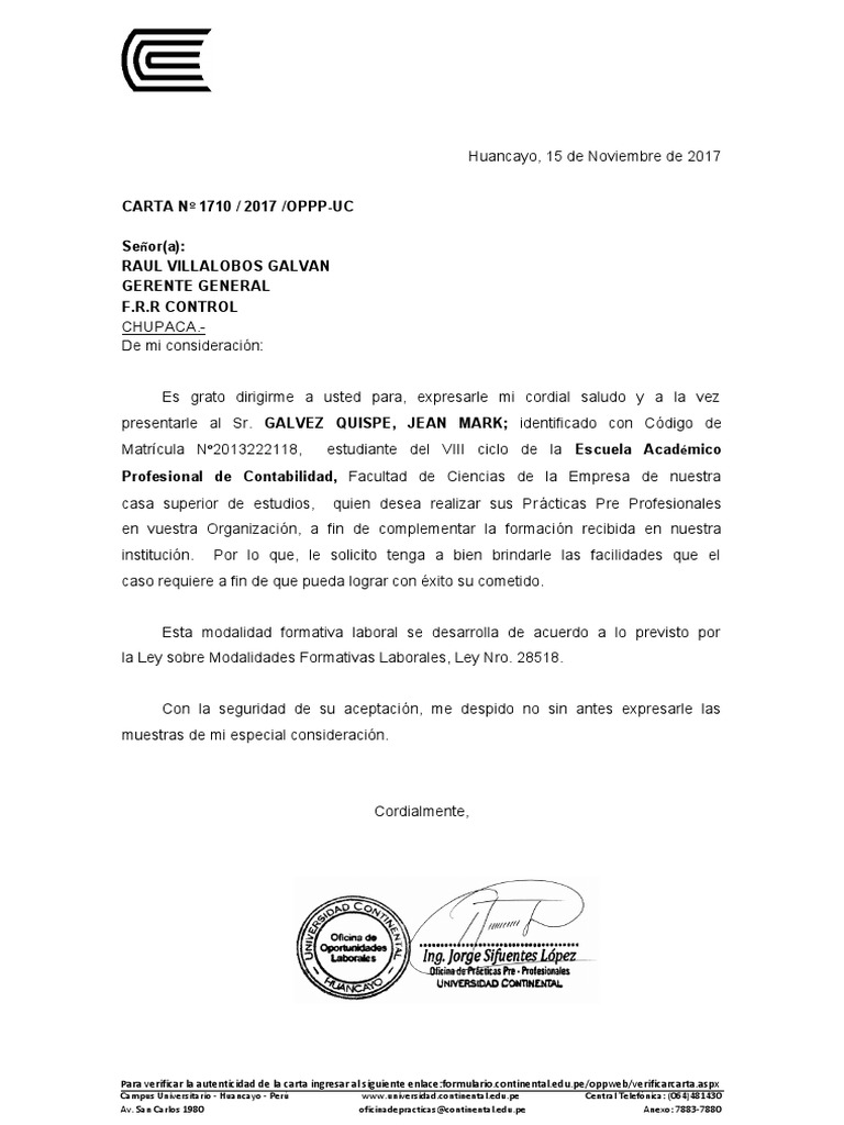Carta De Presentacion Universidad Continental