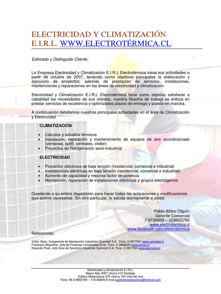 Carta de presentacion. Cutberto aroche 46 mza 186 iztapala mexico. Carta presentación servicios de ingeniería eléctrica. Desde 2005 el equipo de asesores profesionales redactores de cv certificados y tecnólogos expertos de livecareer ha estado desarrollando herramientas profesionales que han ayudado a más de 10 millones de usuarios a crear cv más eficaces a redactar cartas de presentación más convincentes y a desarrollar mejores aptitudes para las entrevistas.