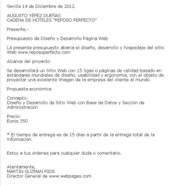 Estas son algunas cartas del mismo estilo. Las cartas de solicitud de presupuesto pueden enviarse por correo electrónico o a través de servicio postal común pero lo más recomendable es hacerlo vía e mail para obtener respuestas más rápidas y tener un registro guardado al cual se puede acceder fácilmente con 3 ó 4 presupuestos basta para tomar la mejor decisión. Modelo de carta de solicitud de presupuesto. Modelo de carta de presupuesto y cotizacion.
