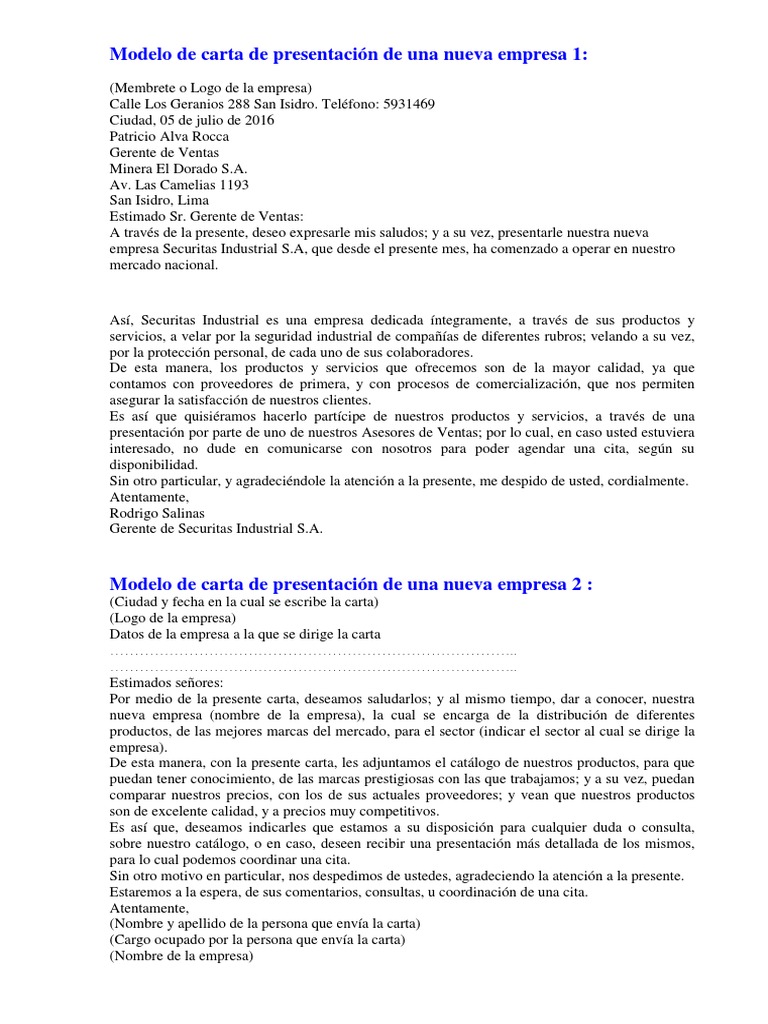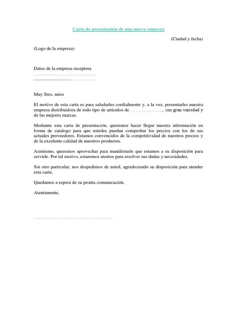Ejemplo de carta de presentación de una nueva empresa. Plantilla de carta de presentaciòn de una nueva empresa 1. En este mismo orden de ideas es importante señalar si se desea realizar una buena carta de presentación esta debe contar con algunos requisitos o lineamientos para que sea más atractiva entre. Jamaica 1754 toledo teléfono 2249999 toledo 18 de agosto de 2012. Carta presentacion nueva empresa te ha servido de ayuda.