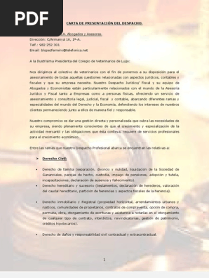 Guardar guardar carta presentacion despacho para más tarde. Esta vez les traemos un modelo de carta de presentación espontánea la cual aunque parecida a cualquier otra carta de presentación en su estructura no se puede obviar un vocabulario más cercano y conmovedor sin perder el respeto que debe seguir existiendo entre dos personas que no se conocen y desean establecer una relación profesional. 2 2 voto positivo. Buenos días me llamo alberto infante caballero.