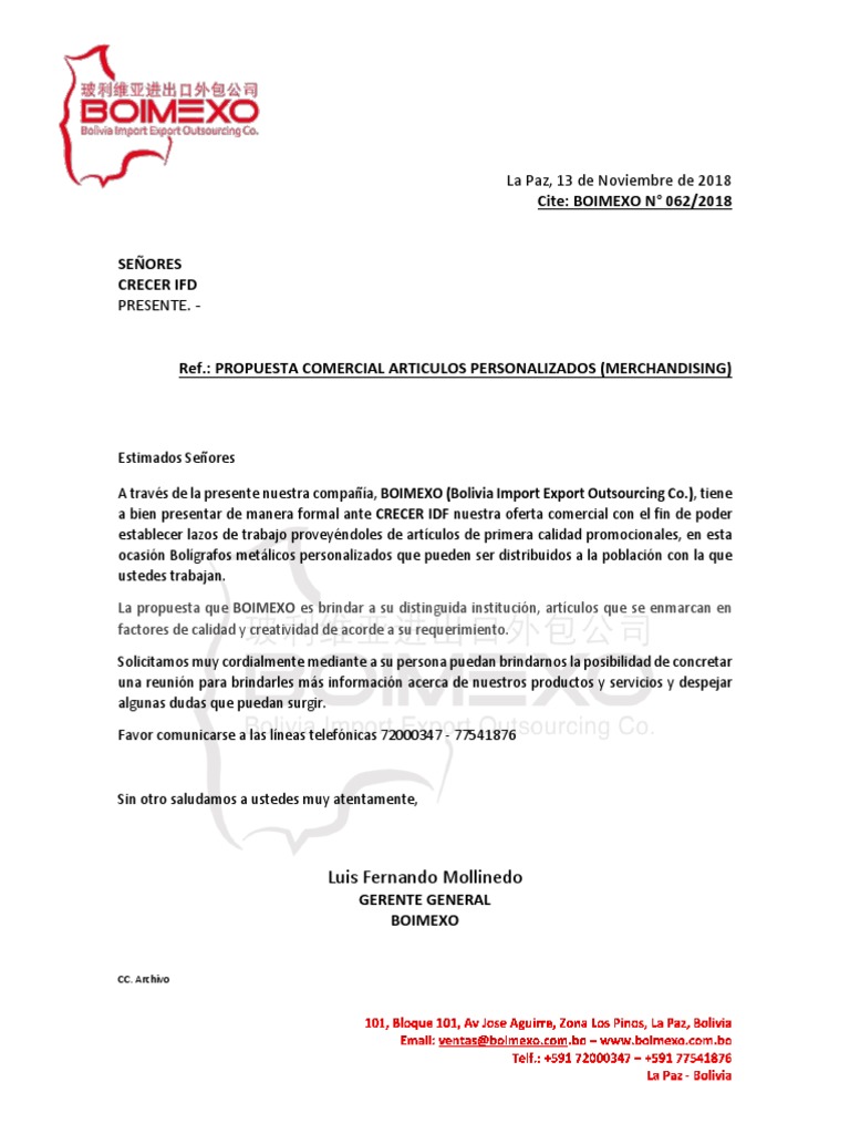 Modelo De Carta De Presentacion Bolivia
