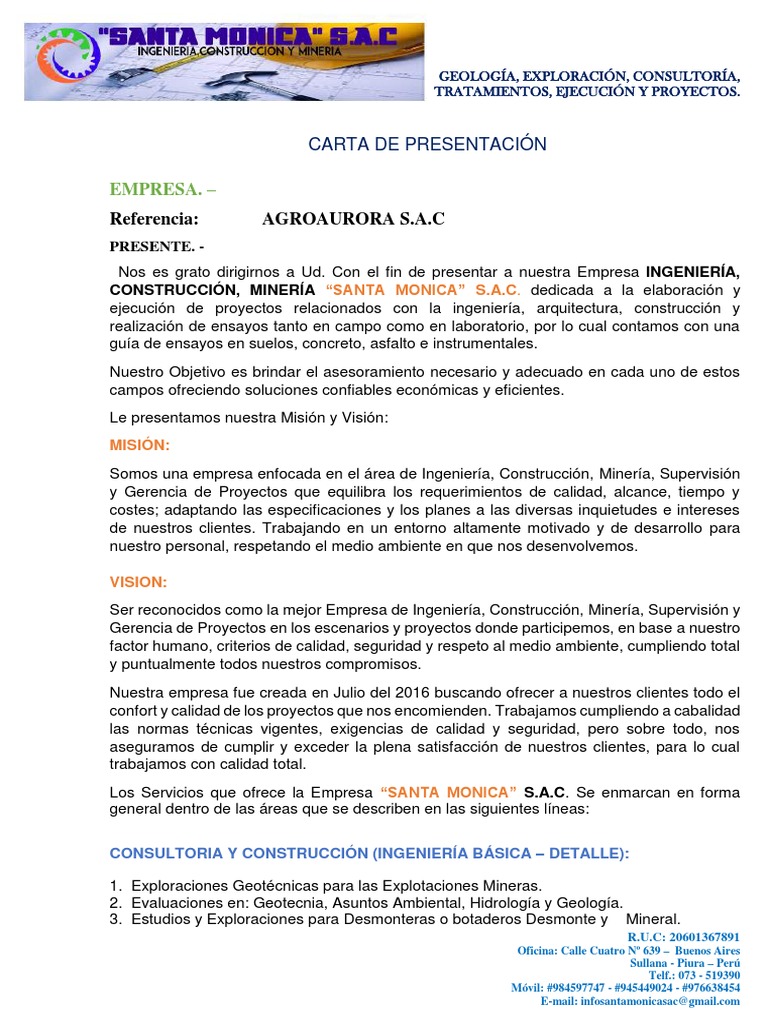 Modelo de carta presentación de empresa pdf 0 1 mb etiquetas. Siendo así a nadie puede extrañar que conservando inalterable su esencia surjan nuevas leyes y reglamentos que modifiquen o amplíen su articulado. Veamos algunos ejemplos de cartas escritas específicamente para el país de perú. Se trata de cartas que emiten las empresas con el fin de darse a conocer y mostrarles a los clientes o posibles clientes los servicios que ofrece y el trabajo al que se dedican.